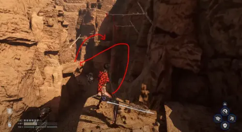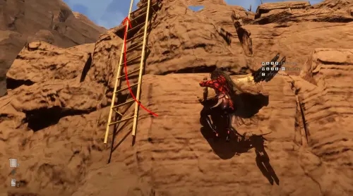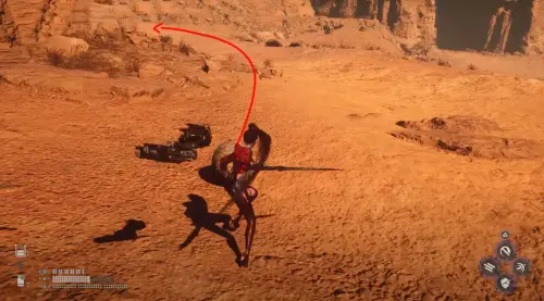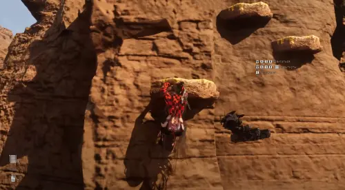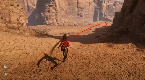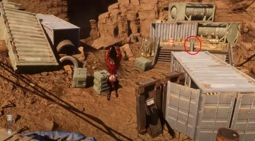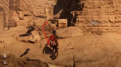 Найдите выступы на скалистых горах к северу от лагеря снабжения «Большой каньон: запад» и заберитесь на них. Пройдите чуть вперед и воспользуйтесь перекладинами, чтобы запрыгнуть на уступ слева, а с него запрыгните на выступ справа. Продолжайте прыгать вперед, пока не окажетесь на нужной скале. Чтобы добраться до этой банки, вам понадобится двойной прыжок. Найдите ящик и заберите предмет.