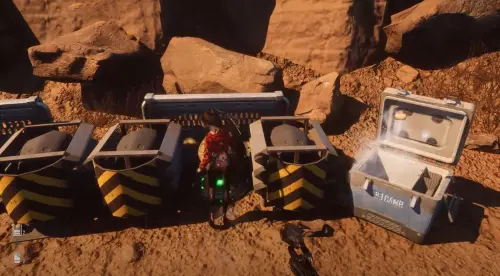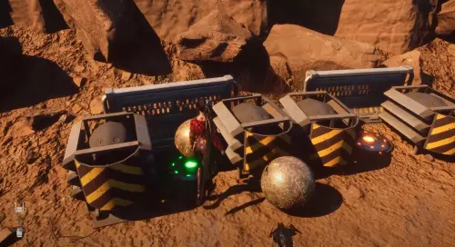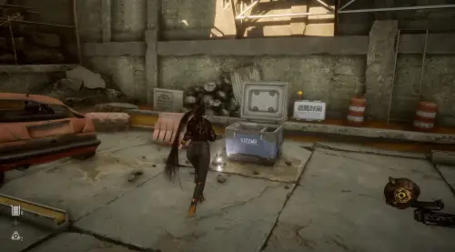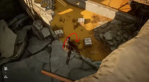 Для получения этого предмета игрокам необходимо решить головоломку с нажимными плитами, верно расставив ящики. Нужная точка показана на карте ниже, она находится к северо-западу от лагеря легиона «Тропа посреди руин». Пройдите в огороженную область, и вы обнаружите здесь три желтых контейнера и нажимные платформы с цифрами.