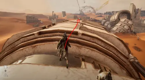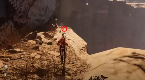 Пройдите через большой разрушенный корабль на краю обрыва и сверните налево. Предмет находится возле обшивки.
