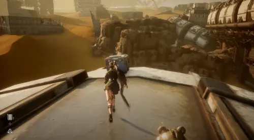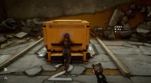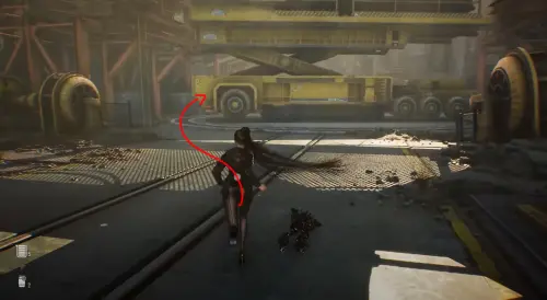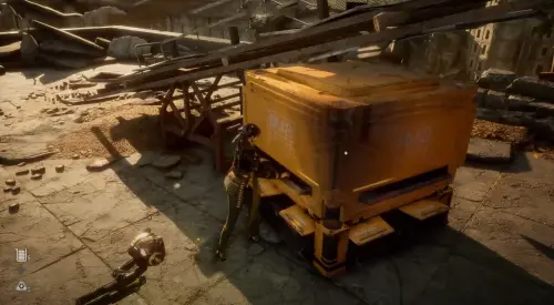Для этого нужно поместить три тележки на их переключатели. Оказавшись на Заводе, пройдите направо, перепрыгнув на другую площадку, а затем взаимодействуйте с первой тележкой и установите ее на первую нажимную пластину чуть впереди, чтобы получить ящик с припасами.