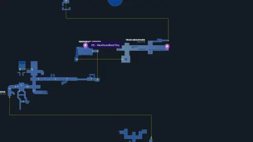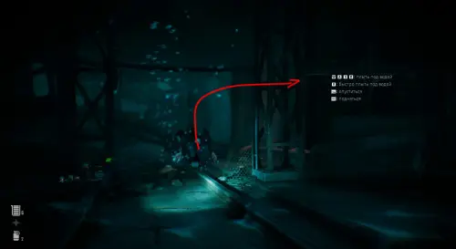 Двигайтесь на восток от предыдущей точки на Кладбище поездов (Train graveyard). Вам нужно свернуть налево и проплыть до конца тоннеля.
