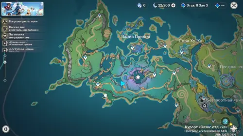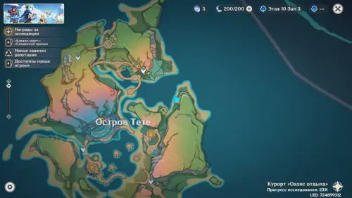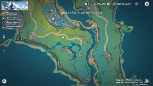 Искатель приключений Лазурного острова I – Завершите ограниченные по времени испытания открытого мира (6) на курорте «Оазис отдыха». С их расположением можно ознакомиться на картинке ниже. Более детальную информацию об их местоположении вы можете найти на интерактивной карте Натлана.