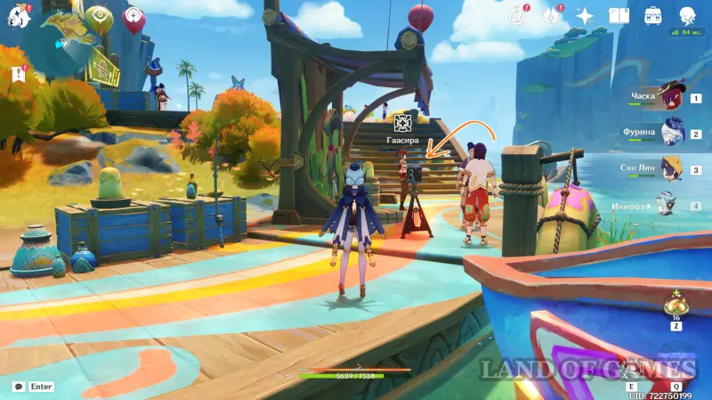 Переместитесь на Беззаботную ярмарку и двигайтесь на севере по части городка, построенной на левом берегу. Найдите фотокамеру на пристани рядом с богатым сундучком и снимите момент приветствия нанасийца.
