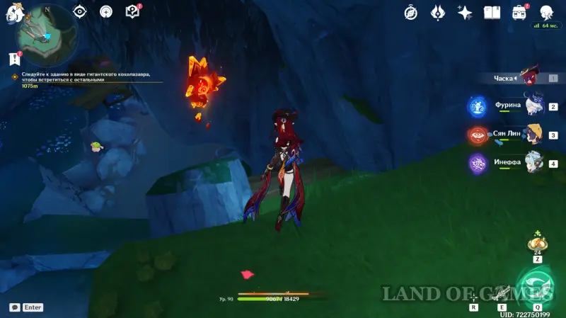 - Второй — в скале на восточном побережье, рядом с группой хиличурлов.