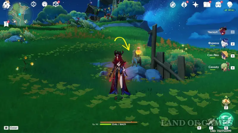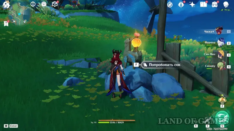 Чтобы получить доступ к испытанию, первым делом нужно отыскать деревянную альпаку с бутылочкой сока на голове — отправляйтесь на холм к востоку от Беззаботной ярмарки и приблизьтесь к фрагменту забора с пропеллером. В этом месте вы найдете статуэтку, на которой стоит флакон с соком, похожий на слайм — выберите действие «Попробовать сок».