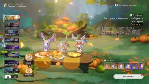 Вновь поговорите с Киреной, а потом возвратитесь в свой ресторан, находящийся в Меморном лабиринте. На этом сюжетная цепочка ивента подойдет к концу. Теперь откройте меню события и заберите все награды, включая световой конус «Вечный ресторан лабиринта» и его наложения.