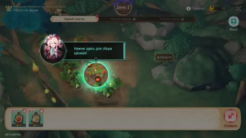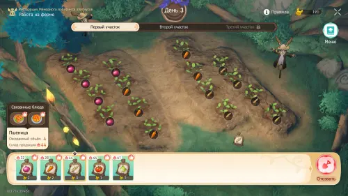 Потом стартует этап по обучению выращивания ингредиентов. Здесь все довольно просто – выберите семена и поместите их на всех свободных грядках. Пока вам будут доступны только два плода, поэтому распределите их по грядкам равномерно.