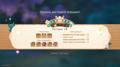 Соберите свой первый урожай гигантских овощей. В результате вы откроете ачивку «Фея и бобовый стебель». Добавим, что если вы купите все столики, то откроете достижение «Волшебная кухня». Продолжайте прокачивать уровни сотрудников, покупать новые улучшения для ресторана и повышать левел блюд.