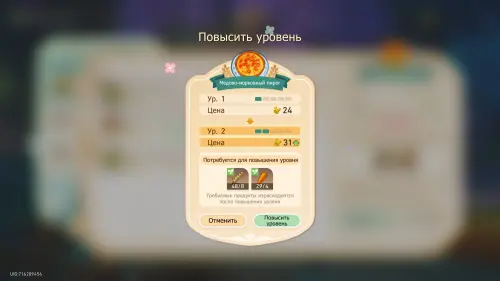 Первым делом вам необходимо будет повысить уровень любого блюда. Мы рекомендуем вам сразу же создать новое блюдо (например, Медово-морковный пирог) и повысить его до 2-го уровня. Не забывайте в будущем увеличивать уровень своих блюд, чтобы повысить их стоимость. Разместите также три новых блюда в меню, как показано на скриншоте ниже.