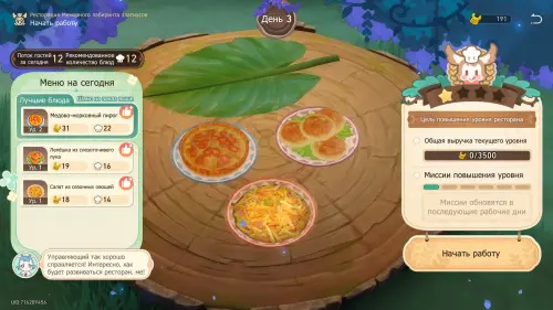Теперь можете начать работу на 3-й день. Обязательно выберите 3 новых блюда, если еще не сделали этого ранее. На этом этапе вам предстоит обслужить 12 гостей, которые будут заказывать разные блюда, поэтому сложность заметно увеличится. Главное – следить за просьбами клиентов и вовремя нажимать на кнопки. Весь процесс показан на видео ниже.