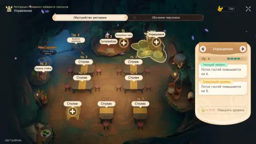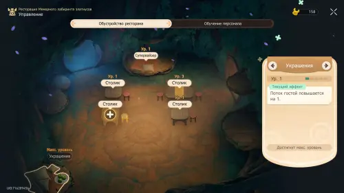 Далее примитесь за улучшение своего ресторана. Обязательно купите барную стойку и повысьте ее уровень до 2-го. Можете также взять дополнительные украшения. Оставшиеся монеты потратьте на прокачку хотя бы одного официанта до 4-го уровня.