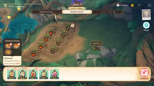 На 7-й день купите грядку на 2-м участке, а в «Управлении» наймите Латукме, чтобы вы перестали тратить семена и монеты при выращивании урожая на втором участке. Сажайте на нем максимально дорогие культуры. Повысьте все блюда в меню до 3-го уровня, если вы этого еще не сделали, и начните следующую смену.