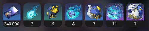 На картинках ниже демонстрируются материалы и их количество, необходимое для максимальной прокачки базовой атаки, навыка, сверхспособности и таланта.