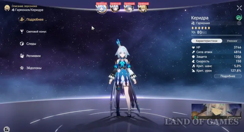 Для их разблокировки требуются одноименные материалы, выдаваемые при выпадении дубликатов героини, что, разумеется, носит случайный характер. А если учесть редкость дропа 5-звездочных персонажей, то будьте готовы потратить на это немало денег и времени. К счастью, даже без эйдолонов Керидра может без проблем играть роль саппорта/саб-ДД в команде.