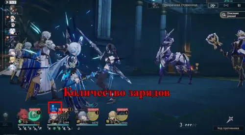 Нельзя также не упомянуть технику «Преимущество первого хода», применение которой наделяет героиню статусом Боевые заслуги. Смена активного персонажа передает ему этот статус. В начале следующего боя использует свой навык на персонаже со статусом Боевые заслуги 1 раз без расходования очков умений.