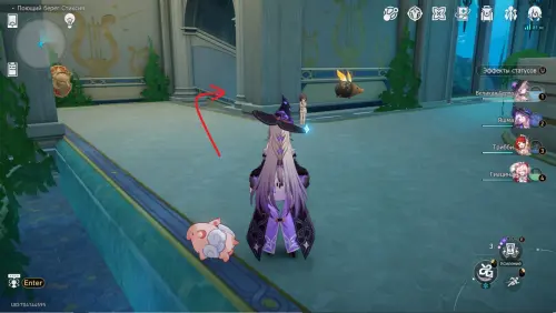 Переместитесь к телепорту «Галерея спящего дворца» в 3D-локации и идите вперед, держась левой стороны. Проходя мимо огромных окон, вы встретите пытающегося плавать светлячка.