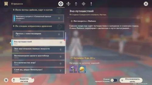 Выполнив все основные требования, вы должны будете автоматически получить стартовый квест ивента под названием «Эхо путешествий» – просто начните его отслеживание в дневнике. Если этого не произошло, то зайдите на соответствующую страничку в меню событий и нажмите на кнопку «К заданию».