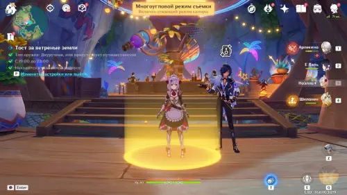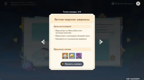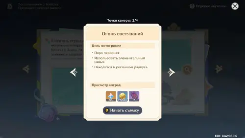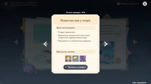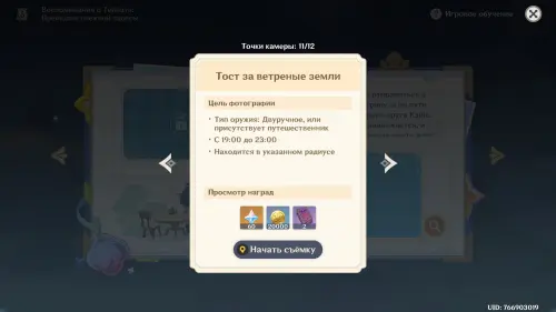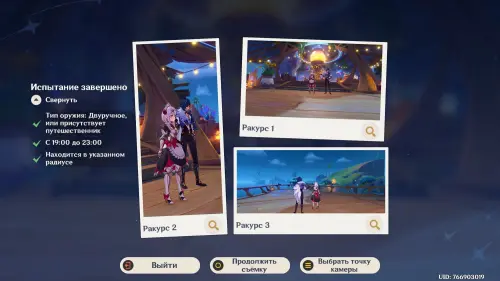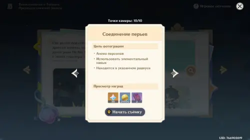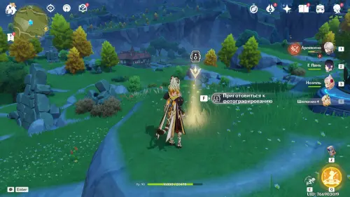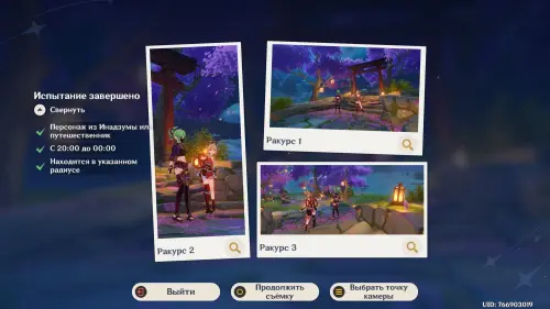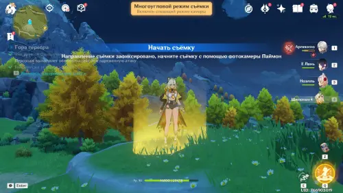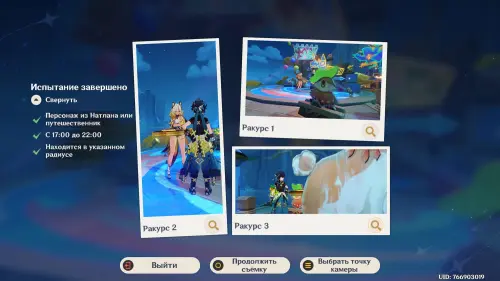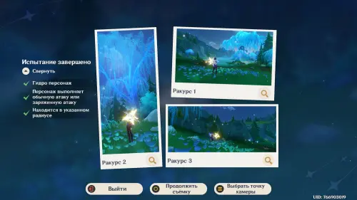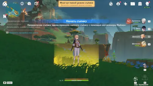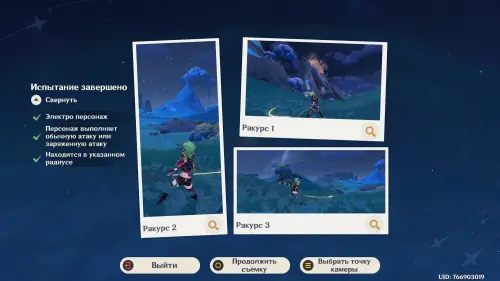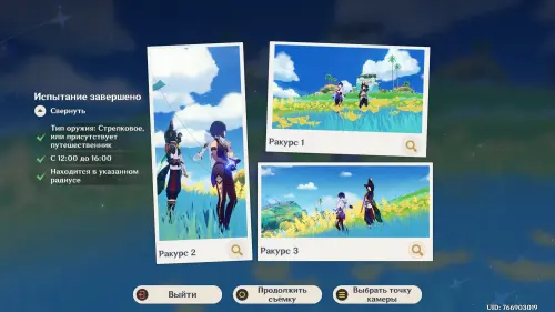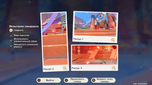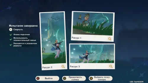 Подготовившись, встаньте в светящийся маркер и нажмите на кнопку для начала фотосъемки. Затем выберите любой понравившийся вам ракурс (здесь он не важен) и нажмите «Enter» для перехода непосредственно к фотографированию. Далее используйте навык своего Анемо героя (клавиша «E») и тут же нажмите «Z», чтобы сделать фото. В итоге испытание будет завершено.