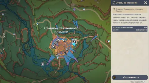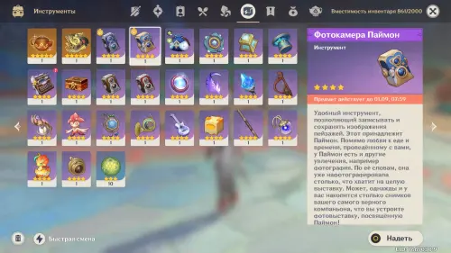 Сначала поговорите с Паймон рядом со Стадионом Священного пламени, а затем примитесь за первую фотосъемку в этой же локации. Далее откройте инвентарь, перейдите в раздел «Инструменты» и наденьте на персонажа Фотокамеру Паймон. Затем обязательно выберите любого персонажа Пиро стихии, к примеру, подойдет бесплатная Эмбер или Путешественник (Пиро).