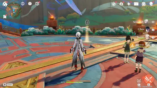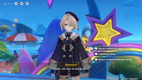 Переместитесь к телепорту, находящемуся к западу от Горы Ху-Ха (курорт «Оазис Отдыха»), а потом пройдите еще дальше на запад, и вы увидите здесь Фремине. Прежде чем говорить с ним, выберите любого персонажа из Фонтейна (Линетт, Лини, Шарлотта, Навия, Ризли, Фремине, Сиджвин, Фурина, Клоринда, Невиллет, Тиори, Эмилия, Эскофье или Шеврез) или Путешественника.