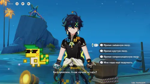 Телепортируйтесь к Гряде Гуицтли, расположенной на курорте «Оазис отдыха» (локация патча 5.8), и вы увидите рядом с телепортом Кинича. Прокрутите время к периоду с 17:00 до 22:00, а затем выберите любого персонажа из Натлана (Иансан, Муалани, Качина, Кинич, Ситлали, Шилонен, Часка, Мавуика, Оророн, Вареса или Ифа) или Путешественника и поболтайте с Киничем.