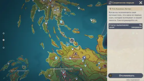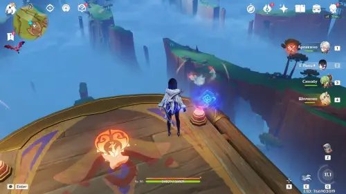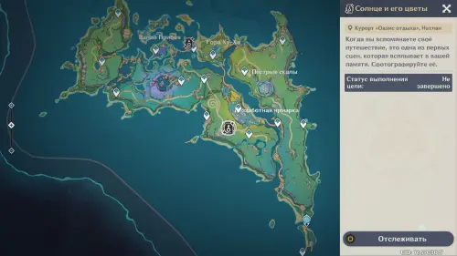 Телепортируйтесь к путевой точке на востоке Атокпана (Натлан), а потом отыщите здесь светящийся маркер рядом со скалой. Прежде чем вставать на него, выберите любого персонажа Электро стихии: подойдет бесплатная Лиза или Путешественник (Электро).