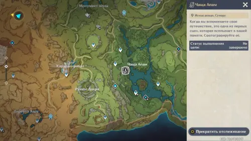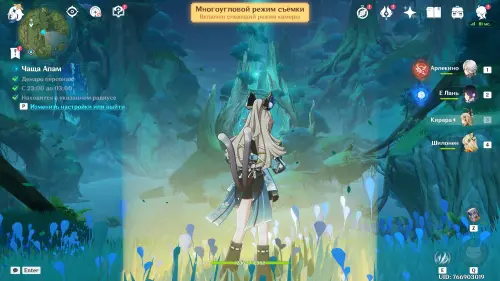 Телепортируйтесь к путевой точке в Чаще Апам (Сумеру), а затем бегите к месту съемки, расположенному немного на юго-востоке. Прежде чем вставать на подсвеченный маркер, сначала выберите любого Дендро персонажа (подойдет и бесплатная Коллеи) и перемотайте время на отрезок между 23:00 и 03:00 с помощью меню Паймон.