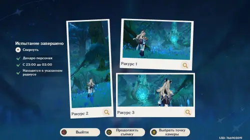 Разобравшись с выполнением всех условий, снова пообщайтесь с Тигнари и начните фотосъемку. Выберите понравившийся ракурс, а потом просто нажмите клавишу «Z», и вы закончите испытание.