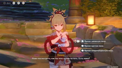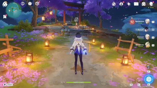 Переместитесь к телепорту на острове Наруками (Инадзума), а затем бегите на остров Амаканэ, расположенный на западе. Поднимитесь наверх, и вы увидите впереди Еимию. Прежде чем подходить к ней, выберите любого персонажа из Инадзумы (Аяка, Кадзуха, Еимия, Саю, Райдэн, Сара, Кокоми, Тома, Итто, Горо, Яэ Мико, Аято, Куки Синобу, Хэйдзо, Кирара или Мидзуки) или Путешественника, а затем прокрутите время на отрезок между 20:00 и 00:00.