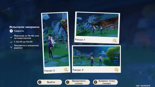 Выполнив указанные условия, подойдите к Сяо и заговорите с ним. Попросите его принять любую позу, а потом начните фотосъемку. Подберите ракурс и нажмите клавишу «Z» для создания снимков. На этом испытание завершится.
