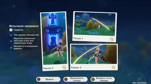 Затем, как обычно, встаньте в круг и выберите ракурс. Далее совершите обычную или заряженную атаку, и именно в этот момент сделайте фото, нажав на клавишу «Z». Тем самым вы завершите испытание.