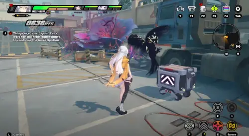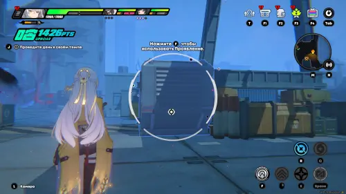 После предыдущего сундука, развернитесь и бегите к металлическому контейнеру, который виднеется впереди. Активируйте режим исследования, нажав клавишу «R», а потом наведите камеру на этот объект и нажмите на «F» для использования Проявления. В результате ящик пропадет, и вы сможете пройти в скрытую область, где и находится мини-грузовик.