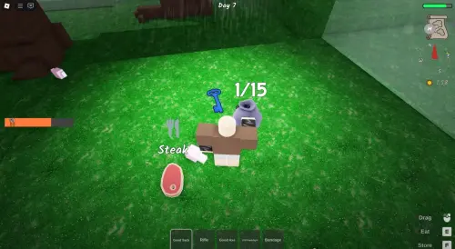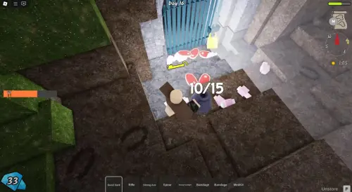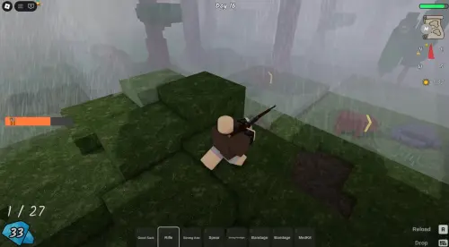 Медведи являются самыми опасными врагами в игре, которые способны нанести огромный урон в ближнем бою, поэтому мы рекомендуем вам залезть на верхушку холма и начать стрелять в мишек из винтовки по одному, как продемонстрировано на скриншоте ниже. Тем самым вы сможете убить их, не пострадав.