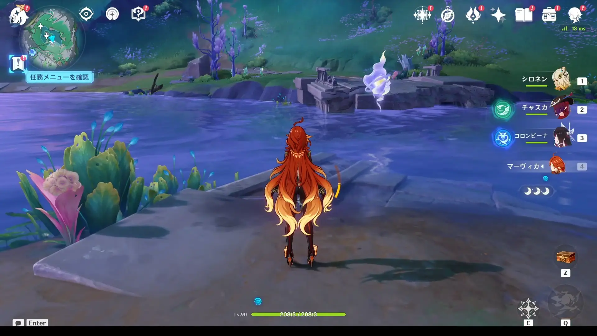 Переместитесь к северному телепорту указанной области, а затем пройдите на запад и спуститесь к воде. Здесь вы обнаружите небольшую пещеру, внутри которой вас ждет лунная частица.