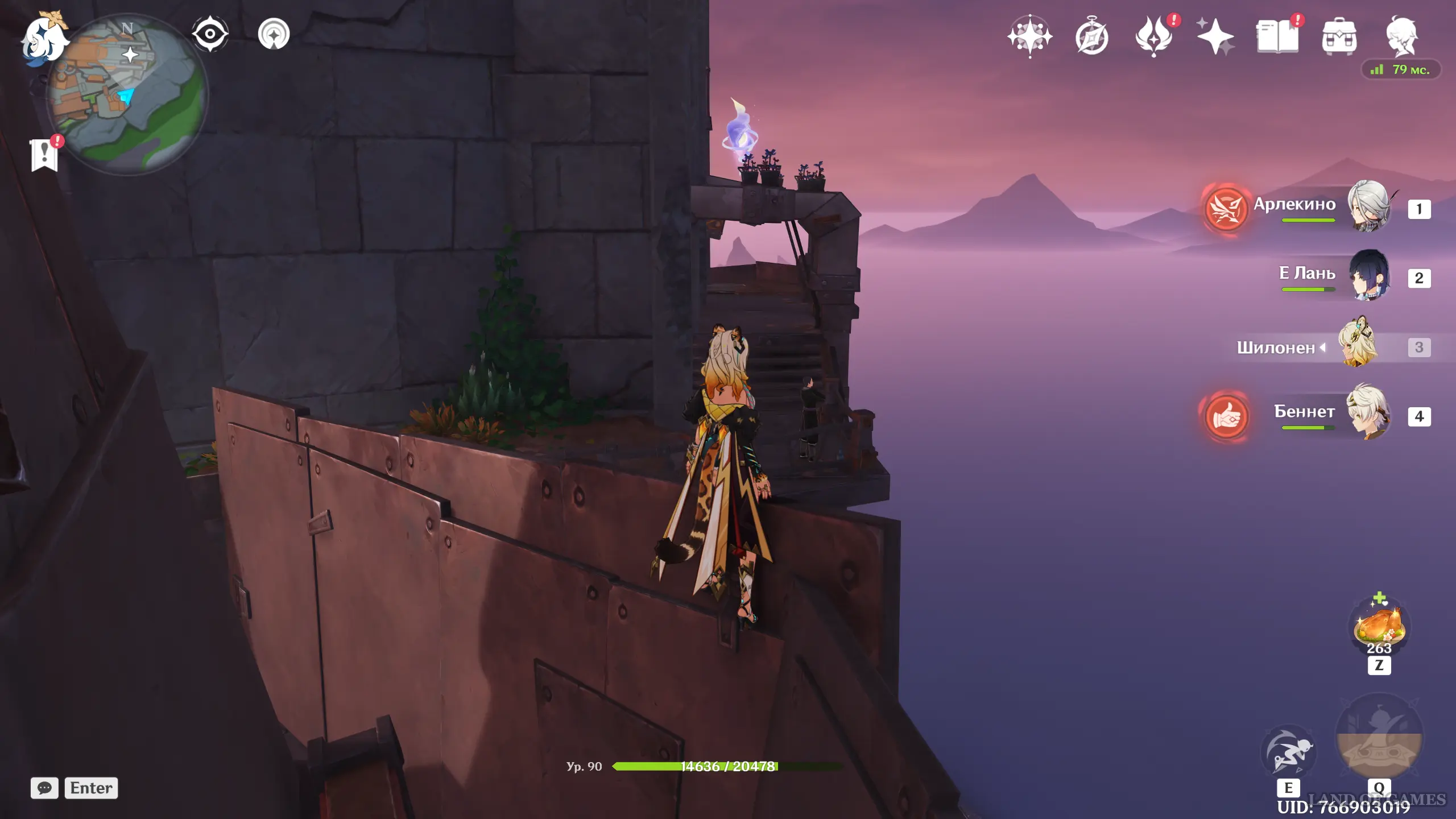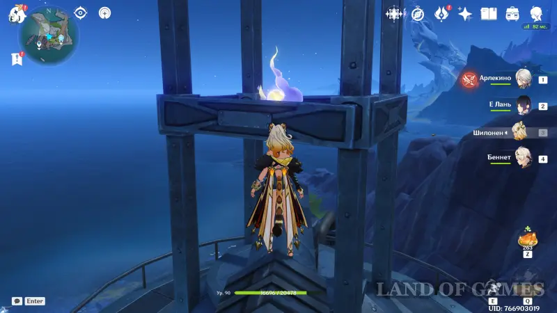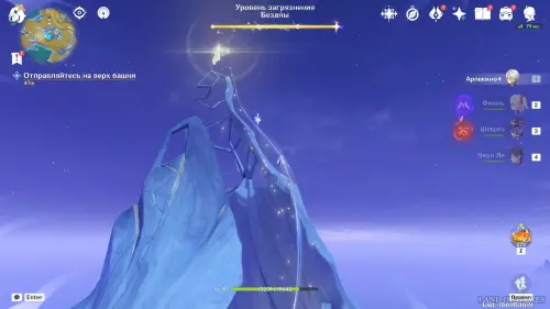 От предыдущего лунокула продолжайте забираться еще выше, чтобы попасть на крышу комплекса. Прямо в центре вы обнаружите лунную частицу. Чтобы подняться на самую верхушку, используйте Гео конструкцию Путешественника, прыжок Кадзухи или колонны Чжун Ли.