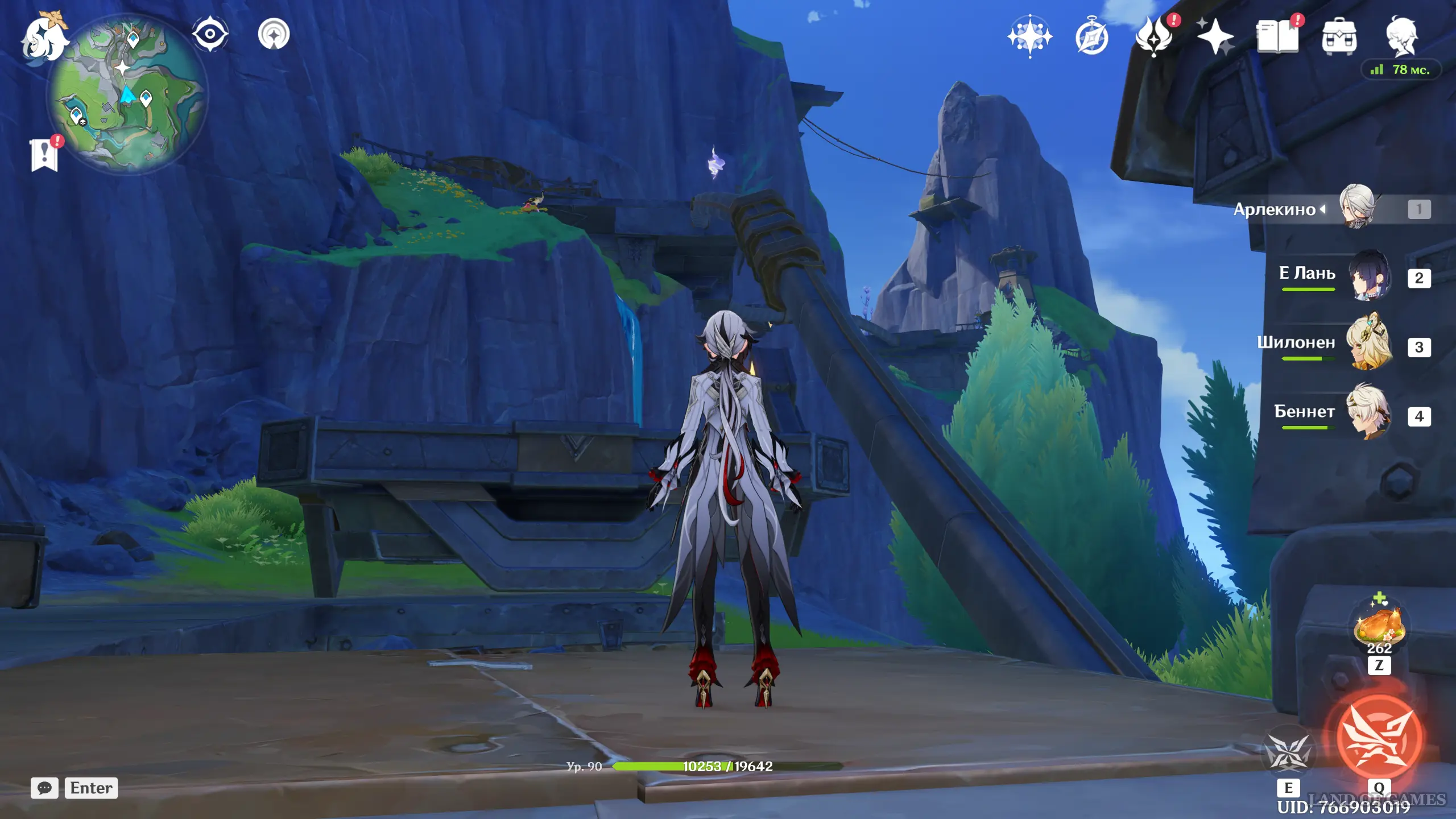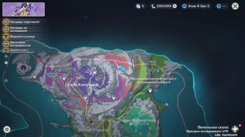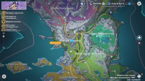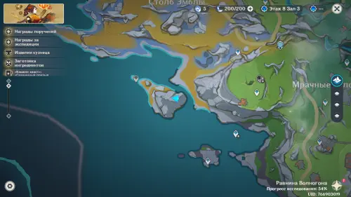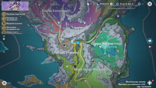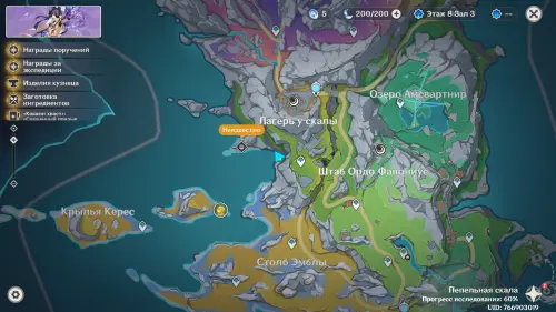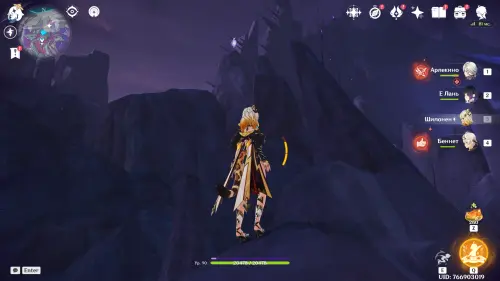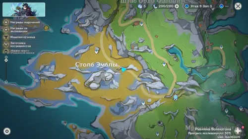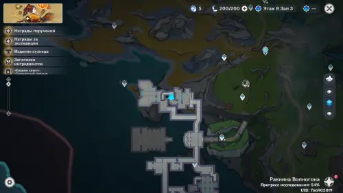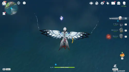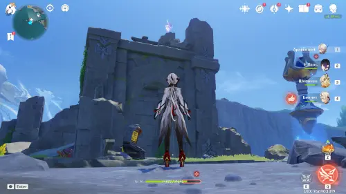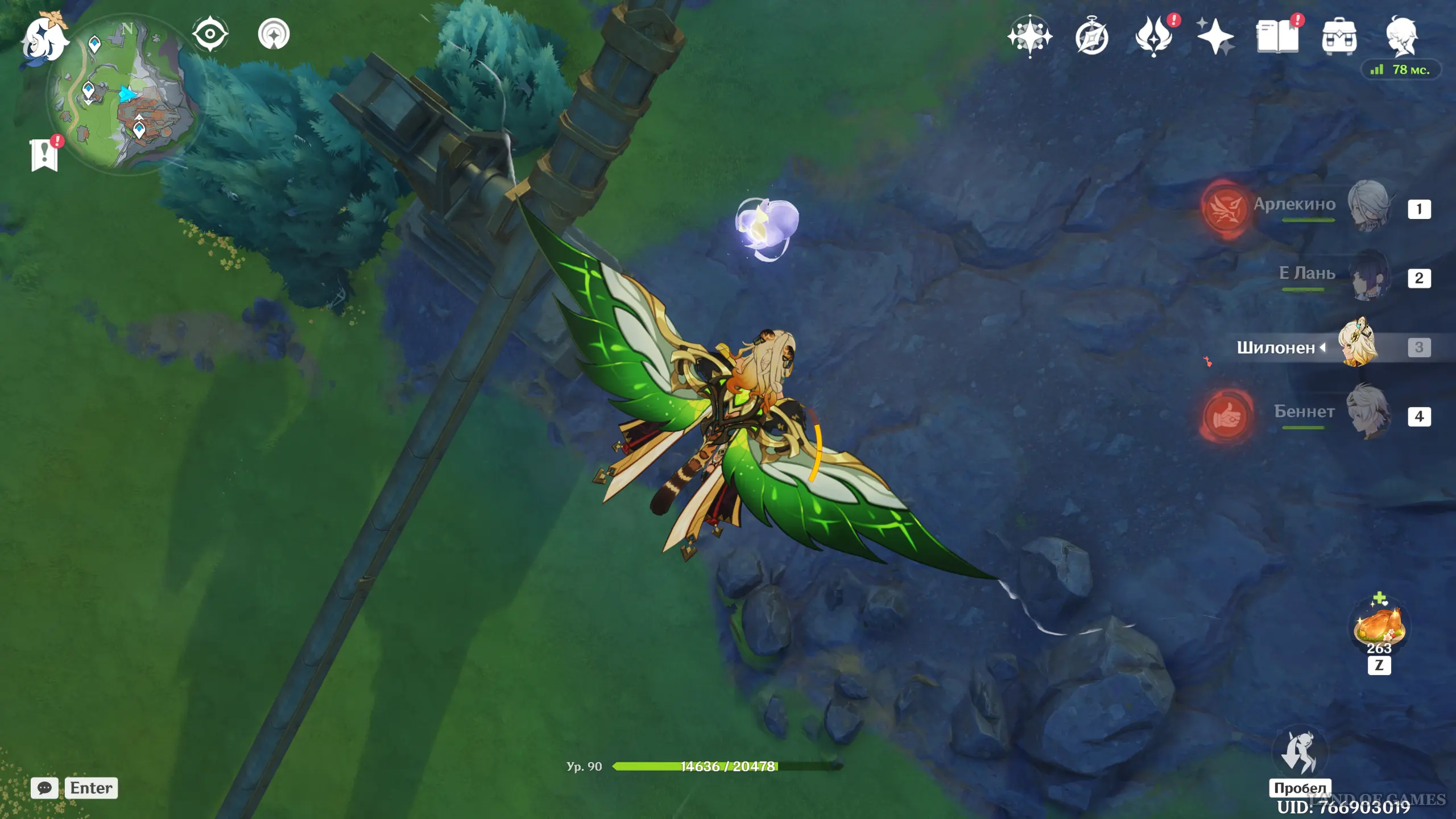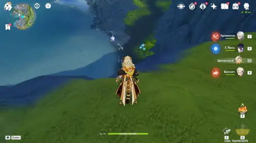 Переместитесь к северному телепорту указанной области, а затем бегите на северо-восток к краю обрыва. Впереди вы увидите скалу, на вершине которой будет парить окул. Спланируйте на нее и схватите частицу, поставив Гео конструкцию Путешественника. Если все равно не получается достать лунокул, то спуститесь немного вниз, превратитесь в куухенки и воспользуйтесь разноцветными воздушными массами, чтобы запульнуть себя вверх.