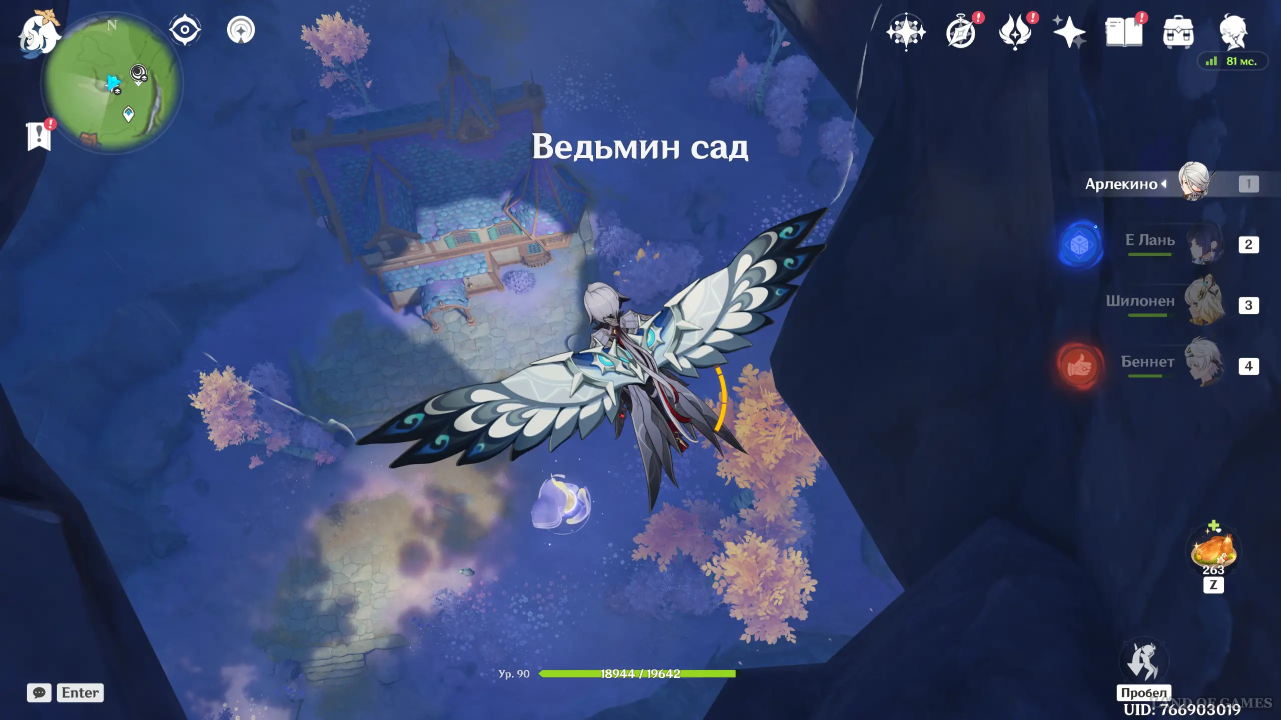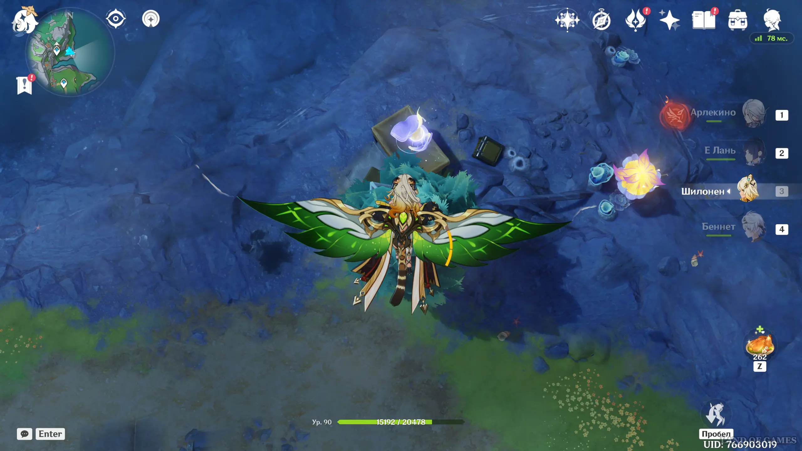 Переместитесь к телепорту к западу от штаб-квартиры Светоносцев, а затем начните бежать на запад к краю обрыва, и внизу вы обнаружите лунокул, парящий над цветком-трамплином.