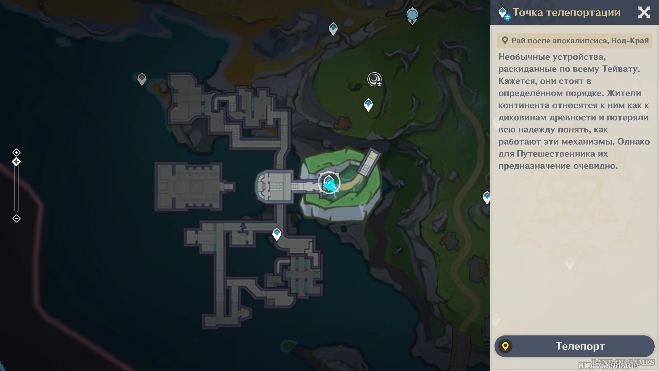 Парит над металлической вышкой неподалеку от самого юго-восточного телепорта области.