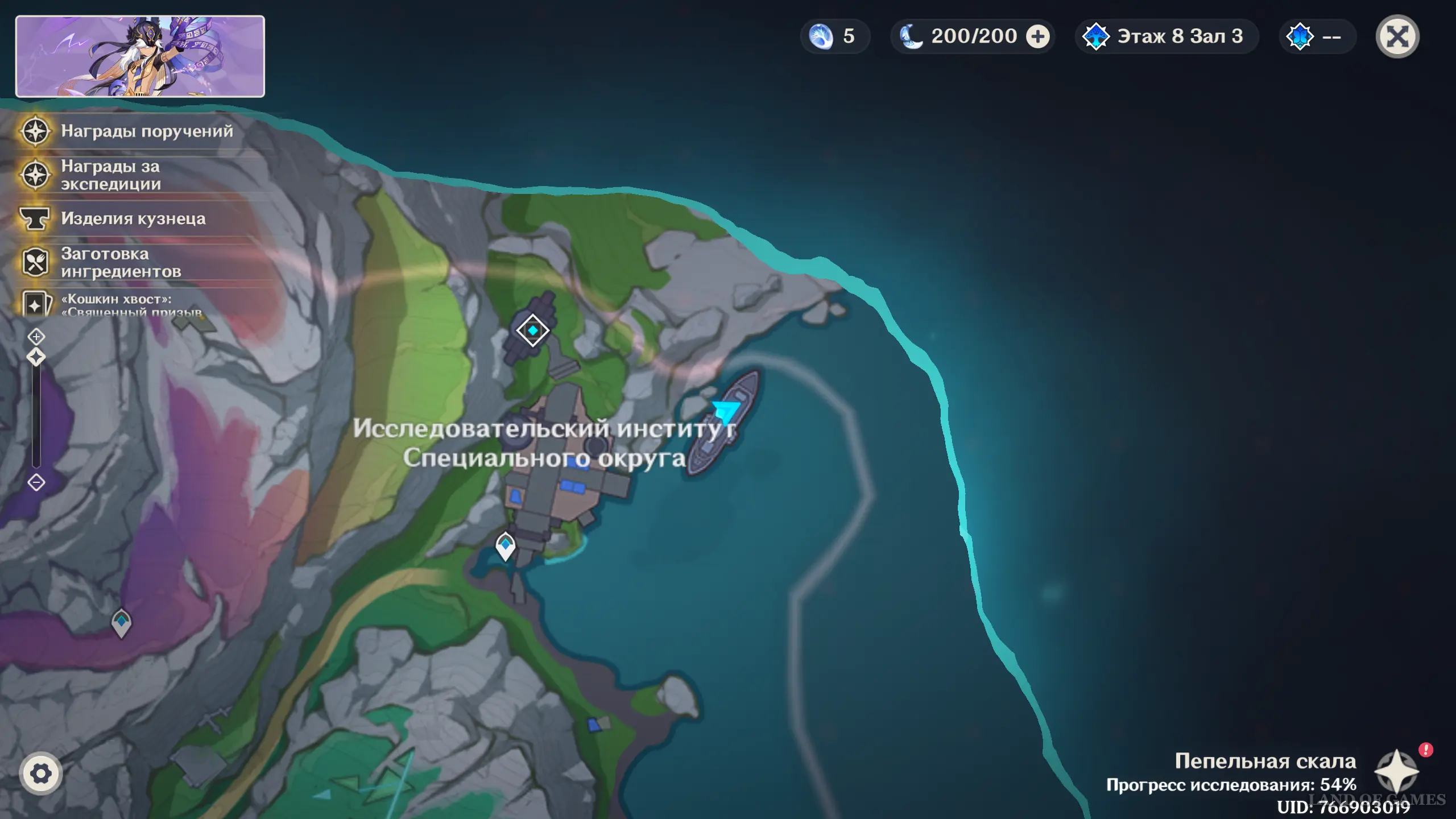 Телепортируйтесь к путевой точке к северо-западу от указанной области, а затем двигайтесь на запад, и вы обнаружите частицу на вершине камня возле побережья моря.
