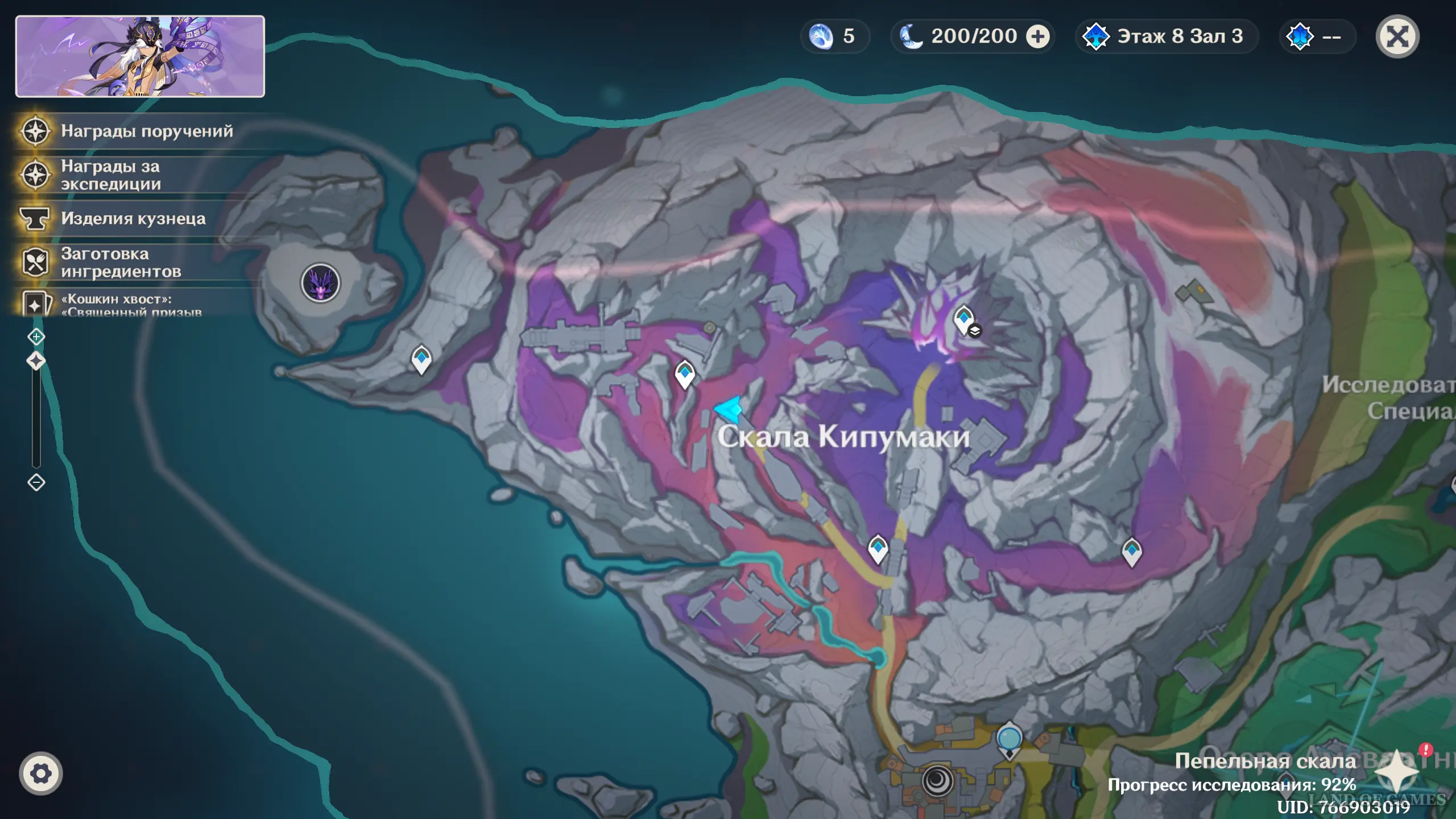 Переместитесь в отмеченную область и бегите на север. Отыщите здесь растение куувяки, превратитесь в куухенки и взлетите наверх к воздушной массе. Затем пульните себя (ЛКМ) в сторону окула.