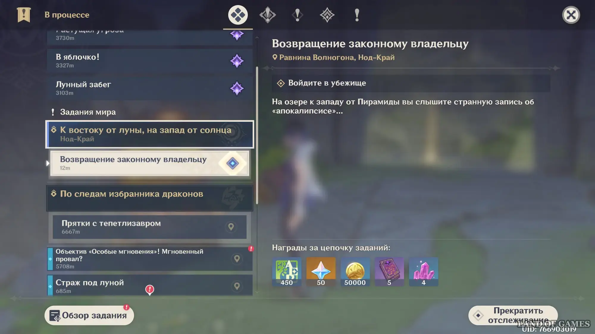 - Награда: 250 очков приключений, 30 примогемов, 20 тысяч моры, 2 книги героя и 3 волшебной руды усиления.