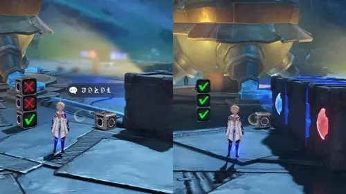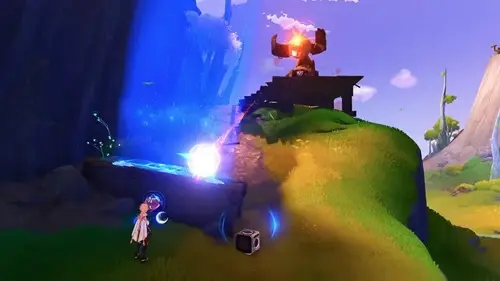 - Возле некоторых загадок расположены синие и красные «батуты» — если во время нахождения на них у вас активна сила луны соответствующего цвета, вы сможете подпрыгнуть значительно выше обычного.