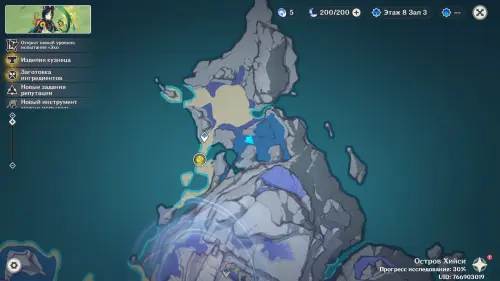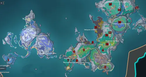 Отправляйтесь в гавань южнее Чертога серебряной Луны (юго-запад острова Хийси). По центру водоема есть три статуи, а под водой между ними — сундук. Чтобы поднять награду на поверхность, решим три головоломки с Зеркалами полнолуния, расположенными по краям побережья. На карте ниже мы отметили и пронумеровали эти места, но решать можно в любом удобном для вас порядке. Более подробно об этом можно прочитать в нашем отдельном руководстве.
