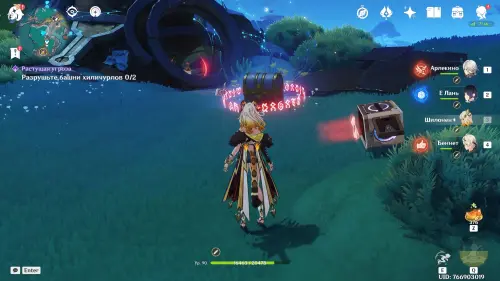 Как только вы его увидите, подойдите к камню и нажмите T, чтобы ослабить врагов. Уведомление может появиться несколько раз за бой, но если вы все же пропустили его, обращайте внимание на цвет камня: когда вокруг него появляется синяя аура, с ним можно взаимодействовать. В большинстве случаев наградой за испытание будет драгоценный сундук. Подробнее про нахождение и закрытие этих камней мы рассказали в отдельном материале.