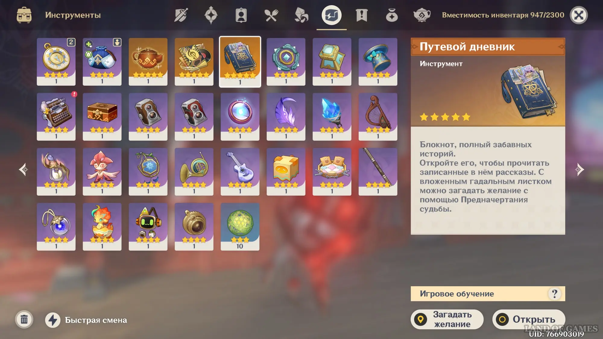 Далее перейдите в свой инвентарь и найдите во вкладке «Инструменты» книгу «Путевой дневник», а потом используйте ее. Откройте раздел «Записи историй», чтобы увидеть персонажей, с которыми вы сможете взаимодействовать в рамках новой игровой системы. Здесь также можно посмотреть предыдущие разговоры с компаньонами. С выходом новых версий количество друзей, с которыми вы можете встретиться в открытом мире, будет увеличиваться.