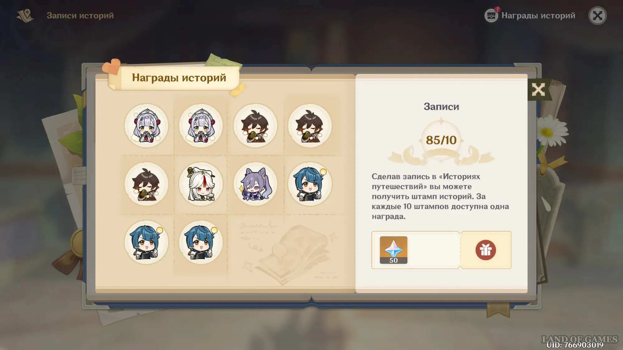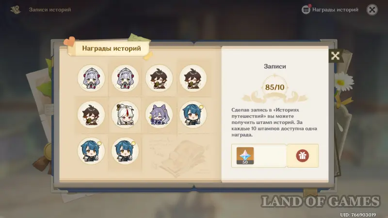 Зачем вообще нужно встречаться с друзьями и записывать их истории? Помимо непосредственно самих увлекательных диалогов вы будете получать штампы историй. За каждые 10 таких заметок вам будут выдавать в награду камни истока.