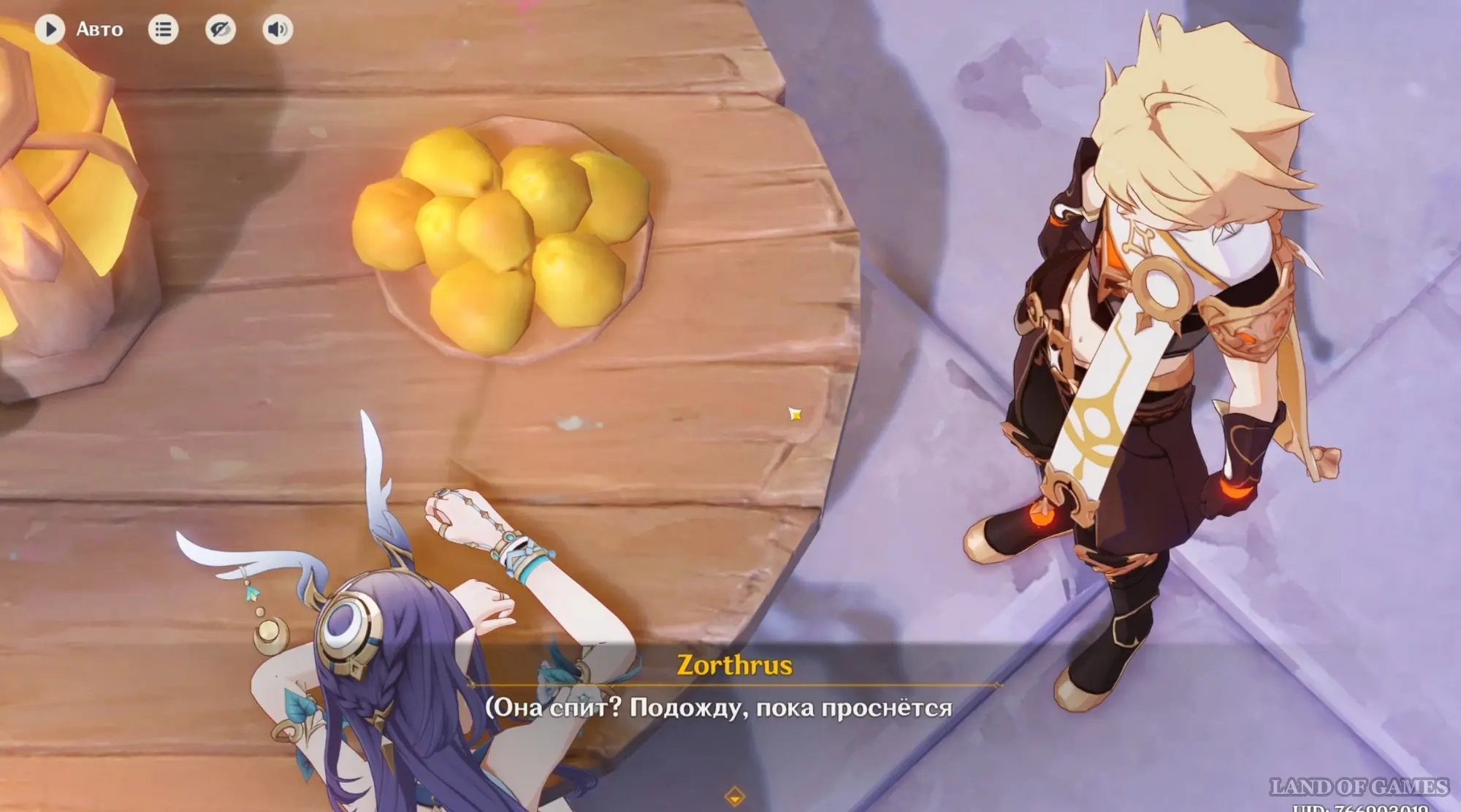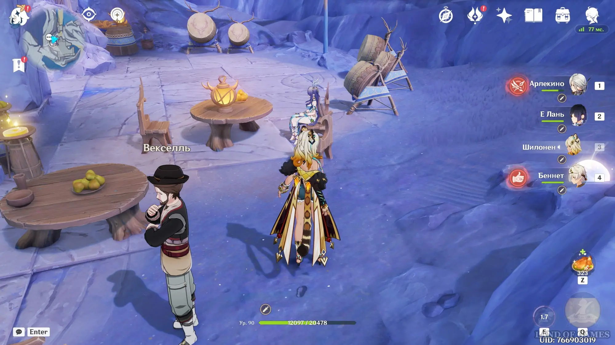 Снова отправляйтесь в Анклав Морозной Луны и опять отыщите знакомую за столиком. На этот раз она будет спать по настоящему, но затем проснется. Она расскажет вам, что сильно устает из-за своих больших рогов, поэтому нередко приходит сюда, чтобы отдохнуть. Вы в шутку предложите ей найти себе свою Паймон, чтобы та летела позади нее и поддерживала рога.