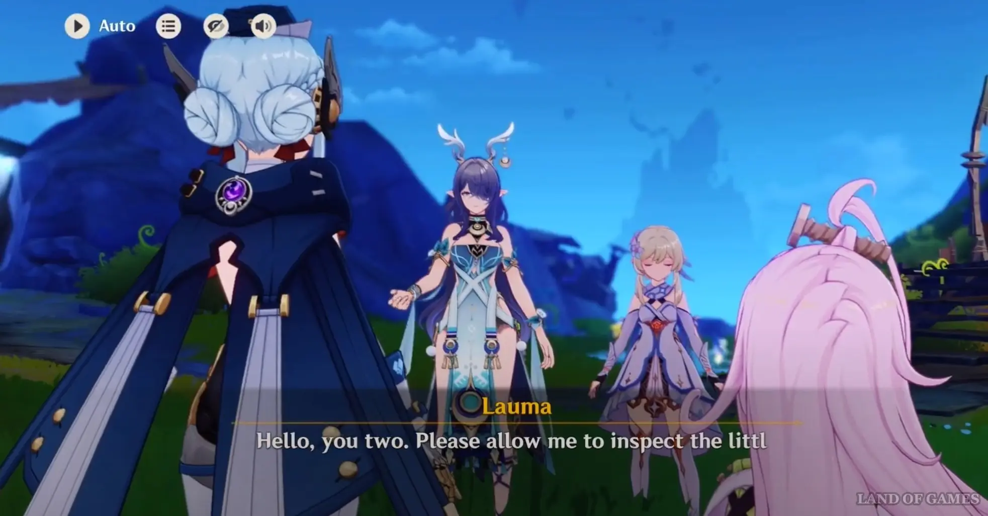 На этот раз вы сможете обнаружить ее в окрестностях Анклава Морозной Луны, где она решила изучить местную документацию и поговорить с Лаумой. Однако во время прогулки ее окружат местные детишки, которые тут же начнут расспрашивать ее про рога. Вместе с Лаумой вам удастся объяснить все любопытным детям.