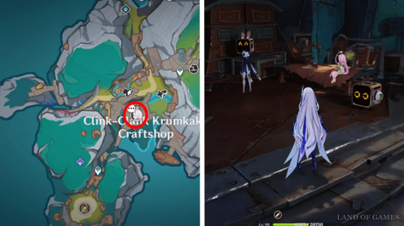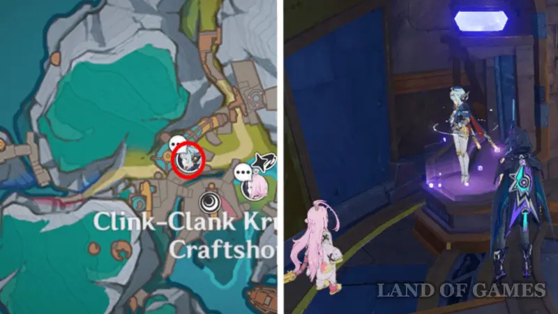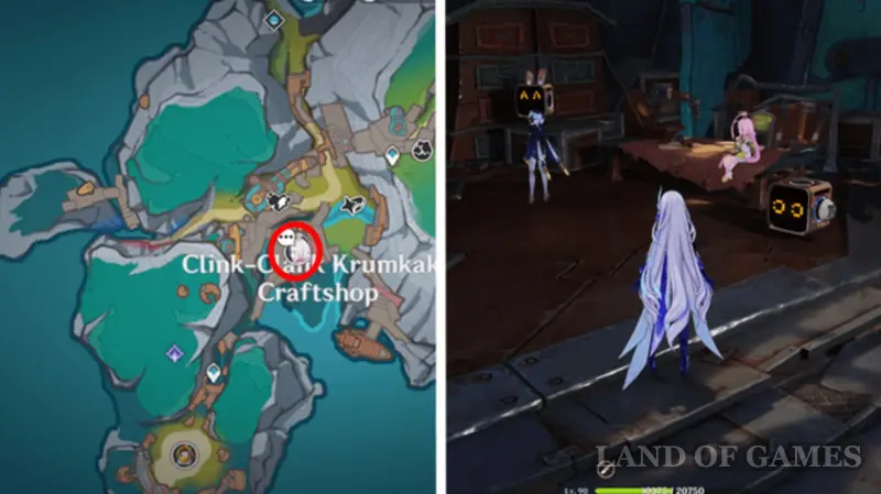 Отправляйтесь в Мастерскую крумкаке «Дзынь-Клац», и вы почти сразу же услышите крик о помощи. Посмотрите наверх, и вы увидите Инеффу, прикрепленную к огромному магниту. Чуть выше можно найти Айно – поболтайте с ней. Девочка скажет вам, что горничная просто развлекается так, поэтому спасать ее не нужно. Даже если вы заберетесь наверх, то никак взаимодействовать с роботом не сможете.