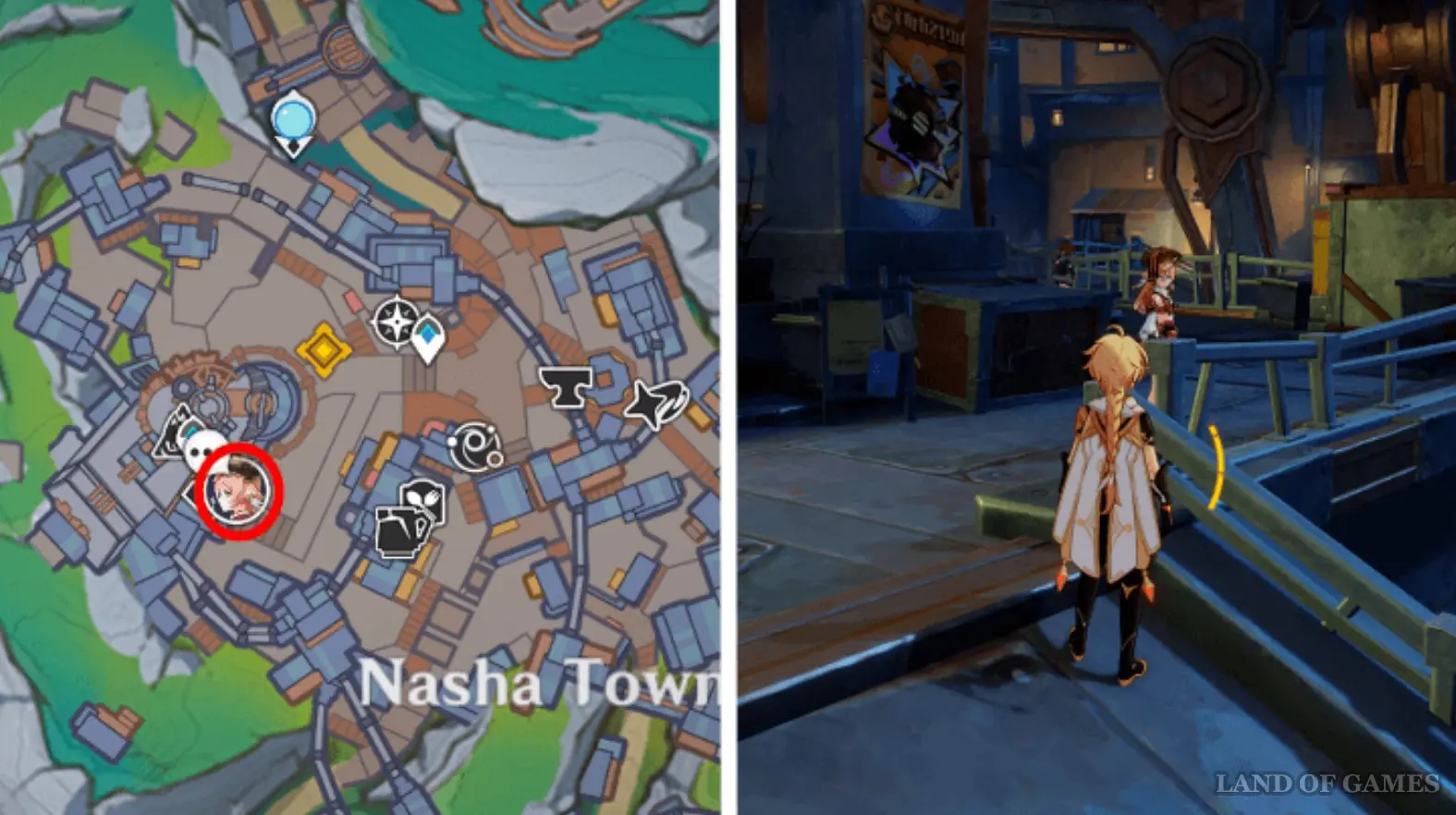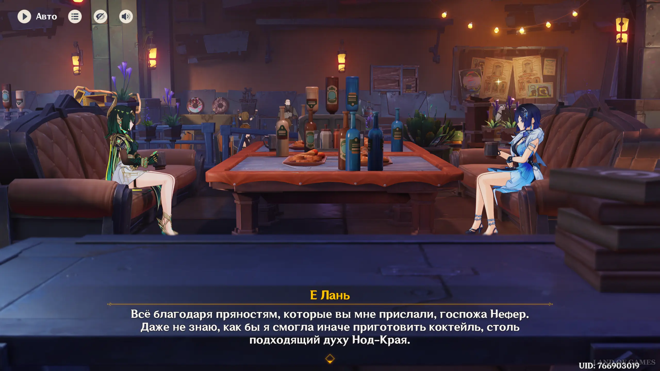 Ее можно встретить внутри бара «Флагман» в Нашгороде. Пройдите в заведение и подойдите к столику, за которым будет сидеть Нефер. Вы увидите, как она мило общается с Е Лань. Сначала девушки обсудят напитки Нод-Края, а затем примутся говорить о делах в Ли Юэ.